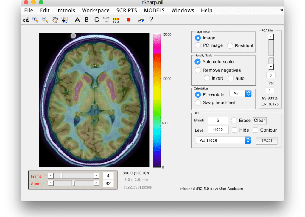 - Calculation of parametric pharmacokinetic modelling images can be performed interactively, calculated slice by slice as the user scrolls through the volume. Reference models for Patlak, Logan and Averaged Simple Flow Model applied on 15O-water are implemented, and it is relatively easy to implement other kinetic models. Similarly, scripts have been developed for regional Patlak and Logan models on ROI data.