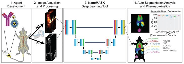 Claims: NanoMASK is an easy-to-use, adaptable deep learning network tool supporting automatic organ and tumor segmentation and designed for improving accuracy and throughput in imaging-based pharmacokinetic studies of nanomedicine. According to its developers, NanoMASK is the first auto-segmentation tool developed specifically for applications in nanomedicine. It combines both anatomical and functional imaging data to produce high quality contours of key organ systems related to agent pharmacokinetics and biodistribution. It was shown to be highly robust across different qualities of input data and generalizable to several nanomedicine classes. Importantly, it can generate pharmacokinetic outputs automatically with extremely high accuracy relative to manually calculated data. This poses to significantly reduce the time and expertise required to utilize nanomedicine preclinical imaging data to its fullest potential.