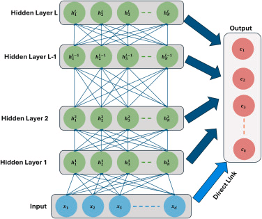 Architecture of edRVFL: The edRVFL network architecture [Ext. Ref.], depicted in the figure below, serves multiple purposes which enhance its utility over traditional DL models. The design principles behind edRVFL are: